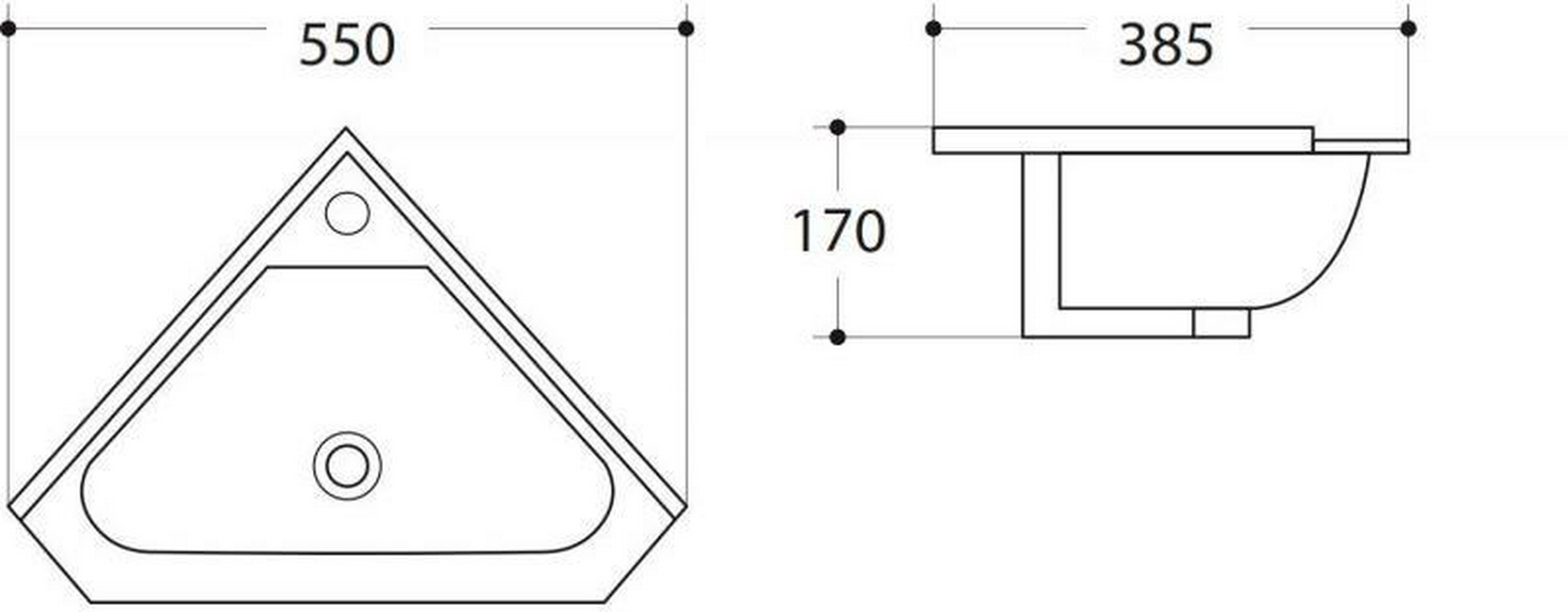 Раковина угловая 550х385x170мм,с 1 отв.д/смесит., с переливом, (керамика, цв.белый), Art&Max ZZ
