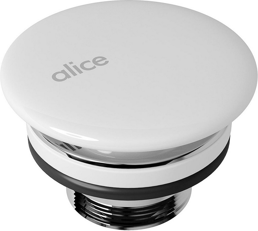 Донный клапан для сливного отверстия раковин/биде, незапираемый, универсальный, G 1 1/4, (крышка керамика цв.белый глянец), Alice ZZ Alice Универсал PIL006