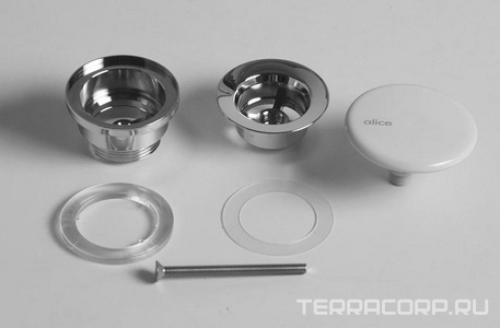 Донный клапан для сливного отверстия раковин/биде, незапираемый, универсальный, G 1 1/4, (крышка керамика цв.белый глянец), Alice ZZ Alice Универсал PIL006
