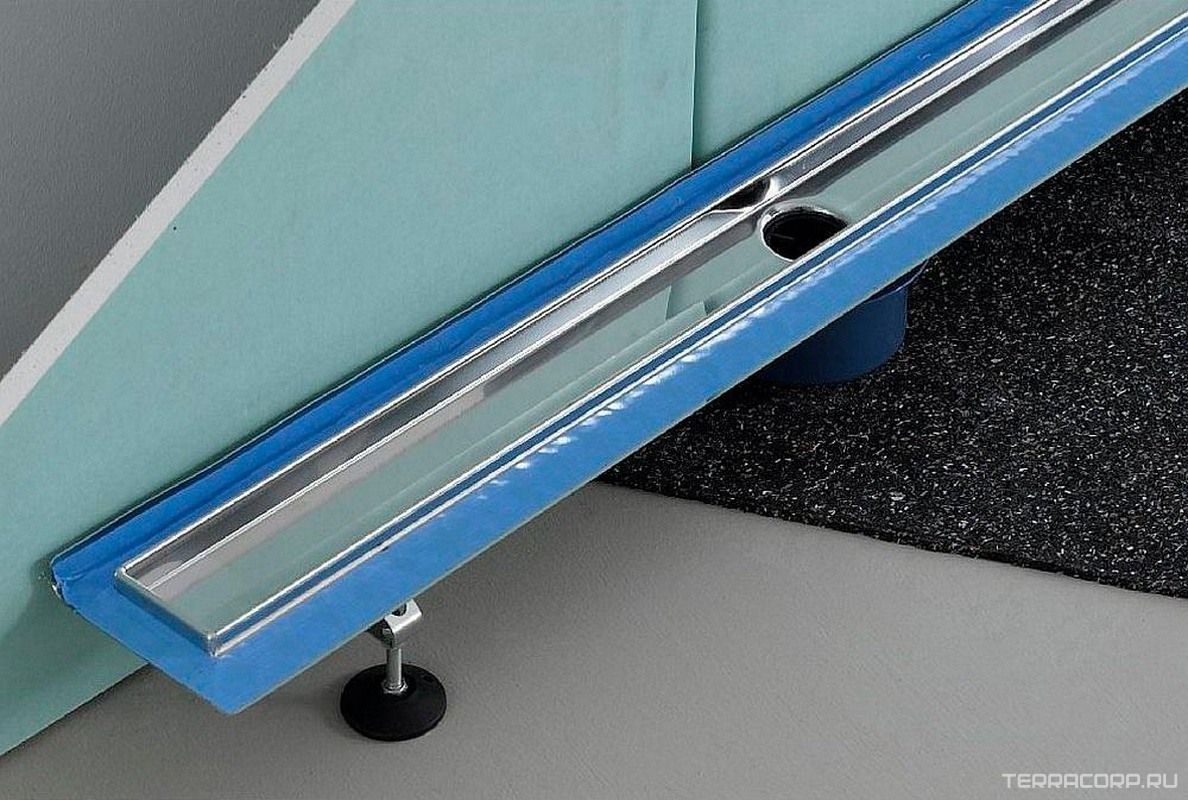 Дренажный канал 700мм,(лоток 640мм),готовый комп,сифон выход вбок0,7л/с,ножки,мембрана антизапах,основа д/плитки"tile"и решетка"steel"2 в1 TecelinusZZ