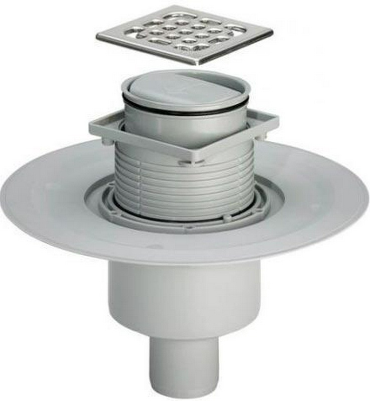 Трап с "Сухим" затвором, h=140мм, вертикальный DN 50мм, 0,4л/с, (пластик цв. серый), решетка и рамка из нерж.стали, 100х100мм, в компл., Viega ZZ