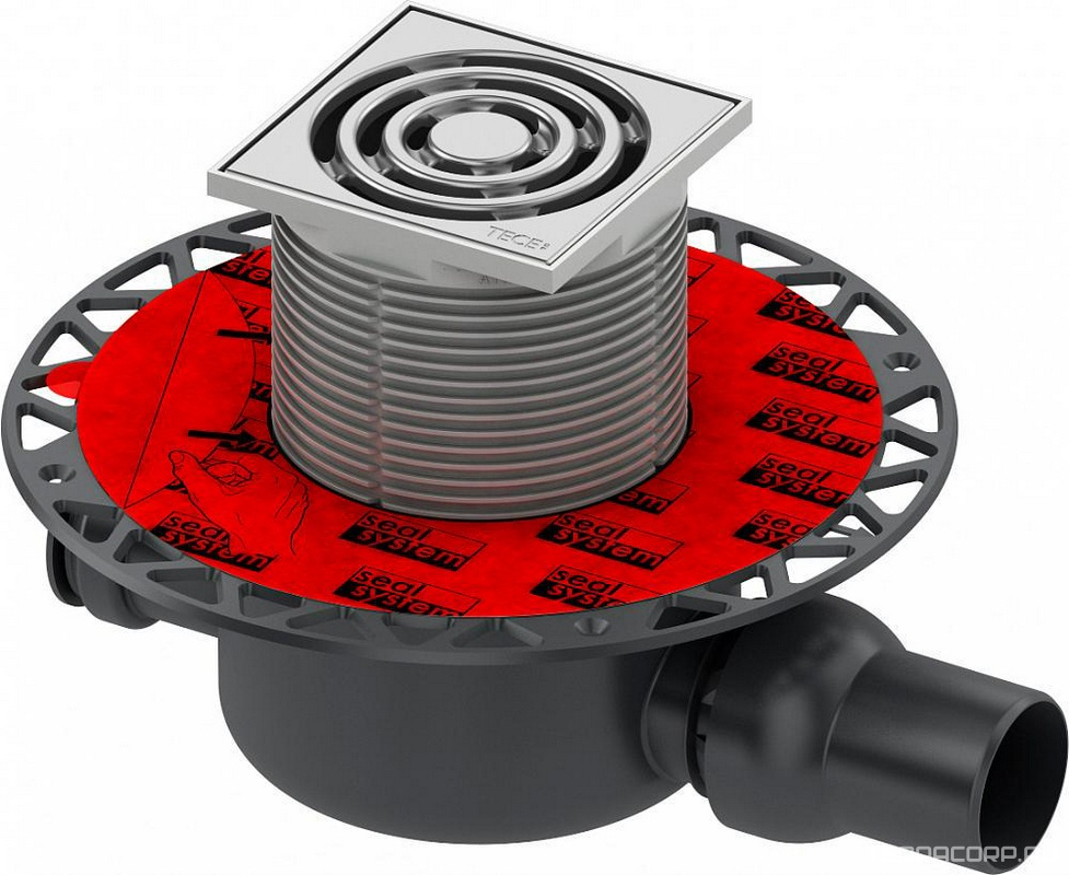 Трап низкий, h74-158мм, выход гориз.50мм, 0,61-1,12л/с, декор.решетка из нерж.стали 100х100мм, в комп,(без стакана с мембраной арт.3695002), Tece