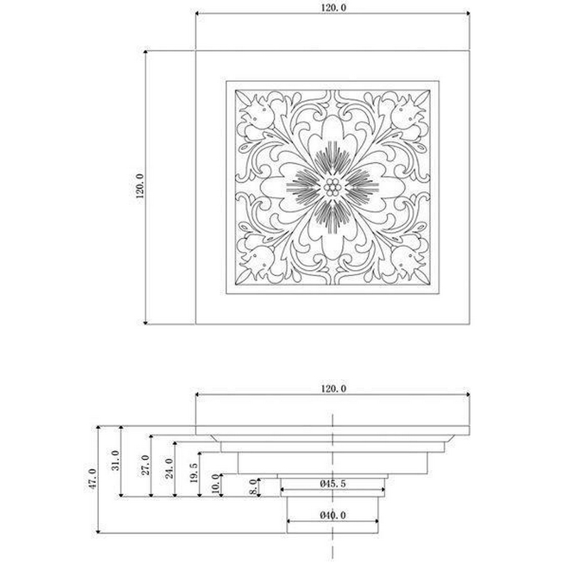 Трап сливной CANYON d40, с декоративной решеткой 120х120 мм, с мех-м обратным клапаном, бронза XX