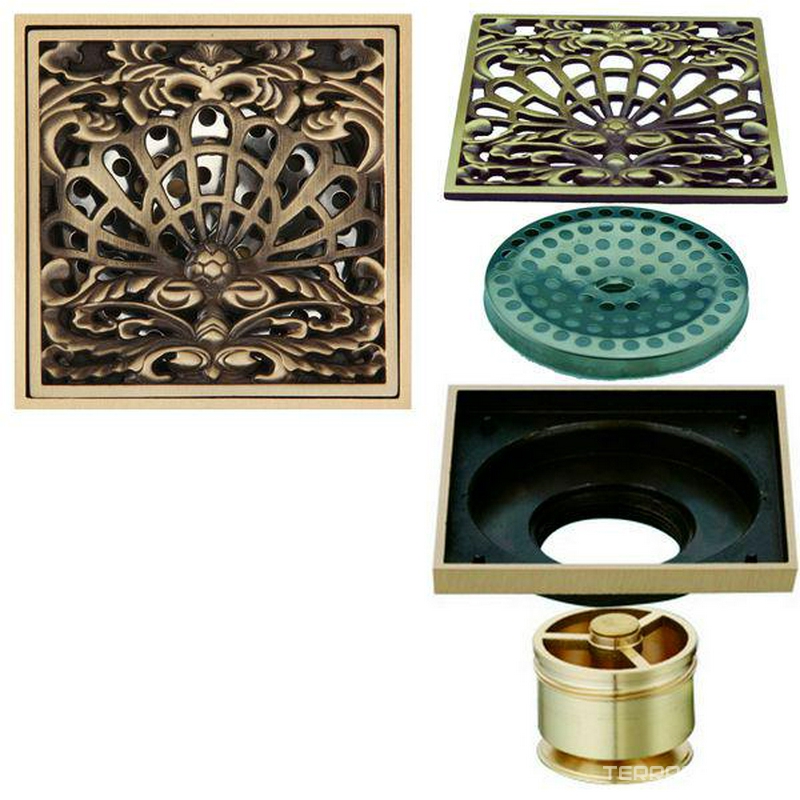 Трап сливной CANYON d40, с декоративной решеткой 100х100 мм, с мех-м обратным клапаном, бронза XX