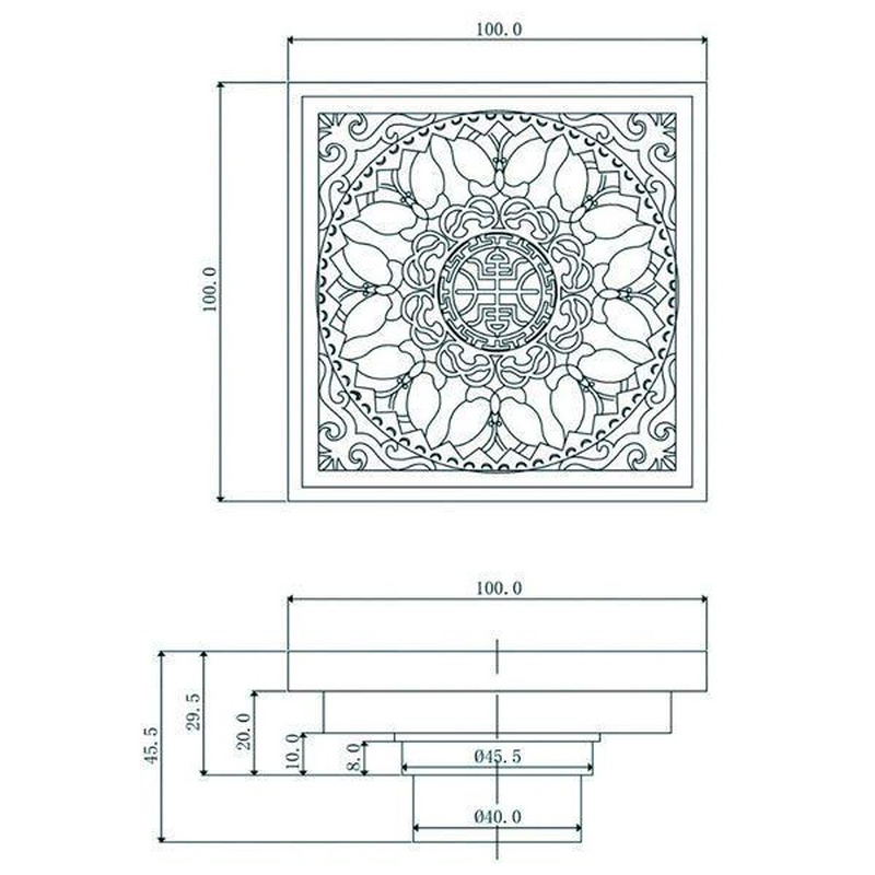 Трап сливной CANYON d40, с декоративной решеткой 100х100 мм, с мех-м обратным клапаном, бронза XX