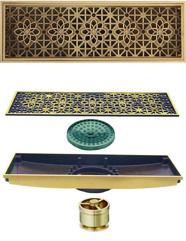 Трап сливной CANYON d40, с декоративной решеткой 100х300 мм, с мех-м обратным клапаном, бронза KL