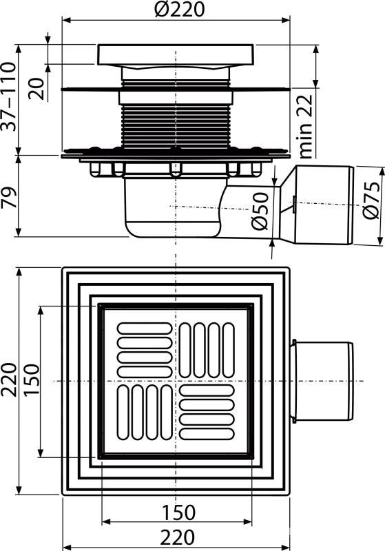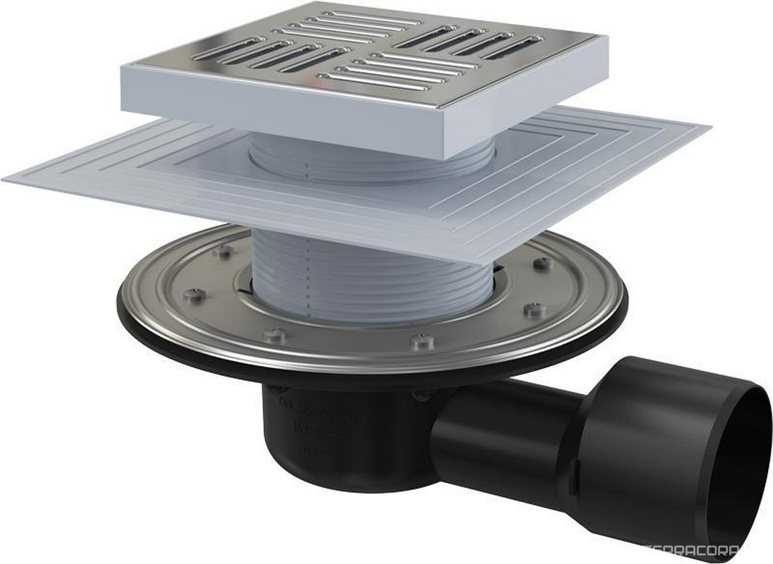 Сливной трап 150*150/50 мм с боковой подводкой, из нерж.стали ZZ