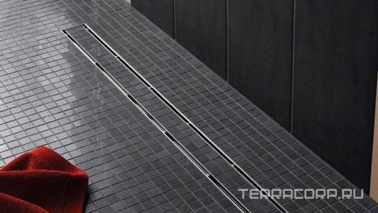 Дренажный канал,прямой 800мм,(лоток 740мм), готовый комплект,сифон выход вбок 0,7л/с,ножки,основа д/плитки "tile",(без стакана арт.660016),TecelinusXX