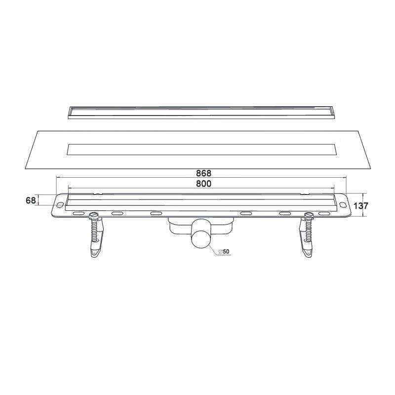 Дренажный канал в сборе, (сифон с гидрозатвором 0,6 л/с решетка под плитку CONTI 800мм, нерж. сталь, монтаж.глубина 65-105мм), WINKIEL/Ekoline ZZ