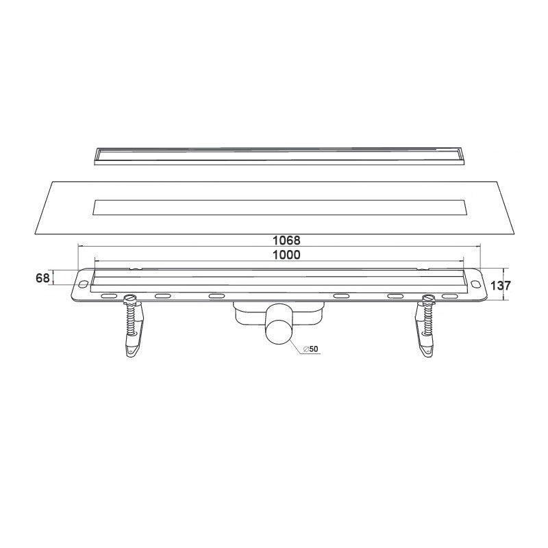 Дренажный канал в сборе, (сифон с гидрозатвором 0,4 л/с решетка PERLE 1000мм, нерж. сталь, монтажная глубина 65-105мм), WINKIEL/Ekoline ZZ