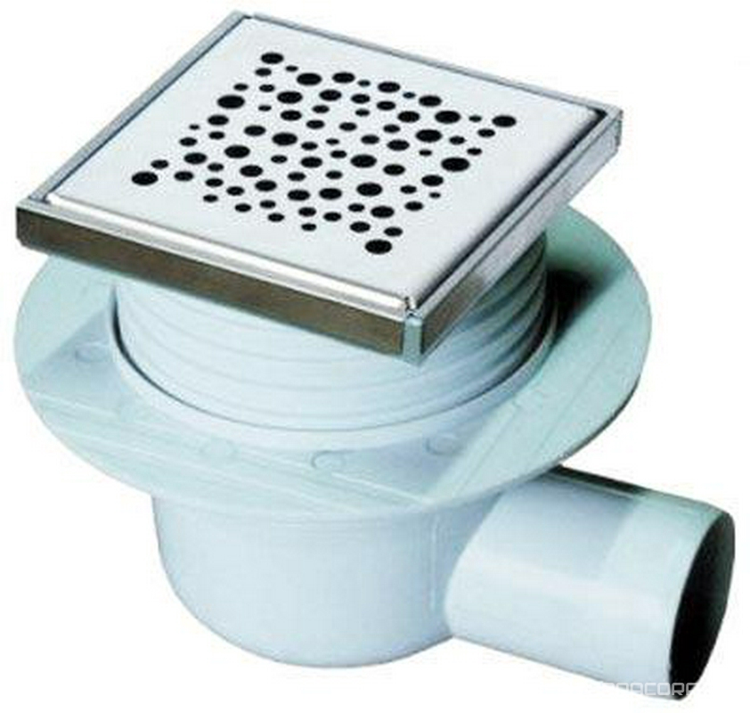 Трап h=100/132мм, выход горизонтальный DN 50 мм, 0,6л/с, декор. решетка из полиров.нерж.стали 110х110мм PERLE, WINKIEL/Ekoline ZZ