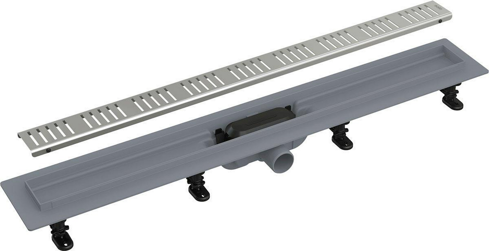 Душевой лоток, корпус укорачиваемый L-300-1200мм, h 95–165мм, готовый комплект, (матовая дизайн-вставка нерж сталь, сифон, ножки), Advantix Vario ZZ