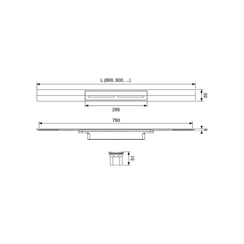 Профиль д/дренажа душа, 1000х55мм, укорачив.,монтаж на плиточн.клей над бетон.стяжкой,БЕЗ сифона арт.673002,(цв.сатин,позолоченный),Тесе ZZ