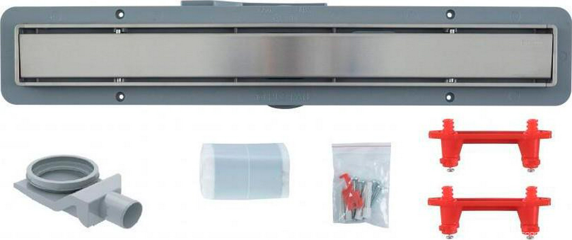 Профиль д/дренажа душа, 800х55мм, укорачиваемый, монтаж на плиточный клей над бетонной стяжкой, БЕЗ сифона арт.673002, (цв.сатин),Тесе ZZ