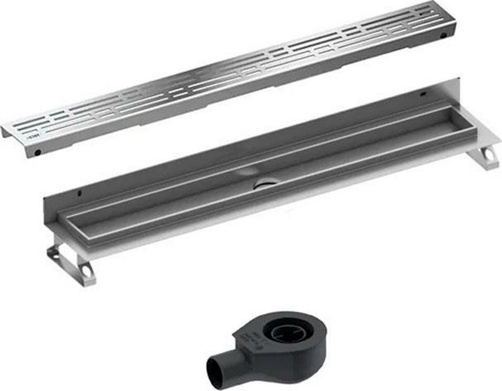 Дренажный канал 900мм,(лоток 840мм),готовый компл,сифон выход вбок 0,7л/с,ножки,мембpана антизапах,основа д/плитки"tile"и решетка"steel"2 в1 Tecelinus