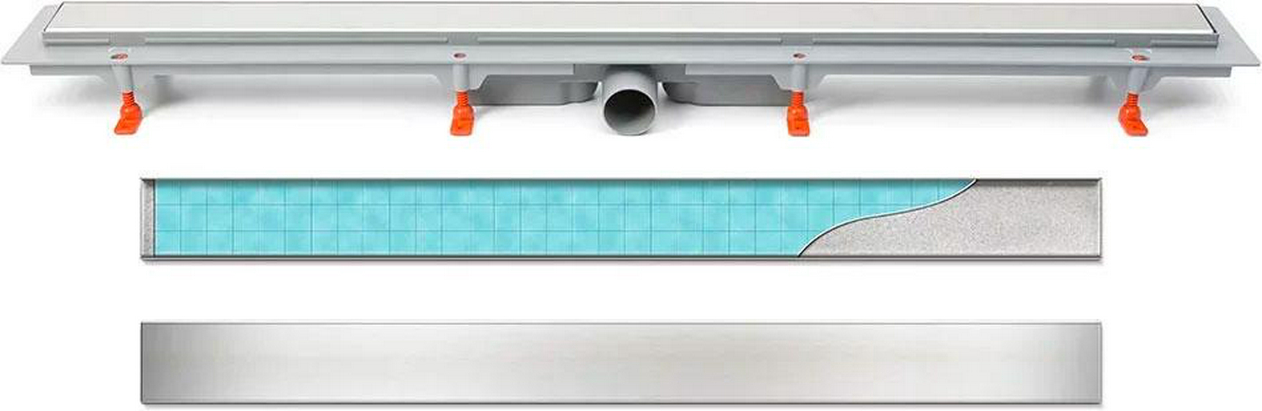 Водоотводящий желоб 650 мм MCH, боковой выпуск, комбинированный затвор, сливом D 40, с решеткой под плитку, цв. хром, ZZ