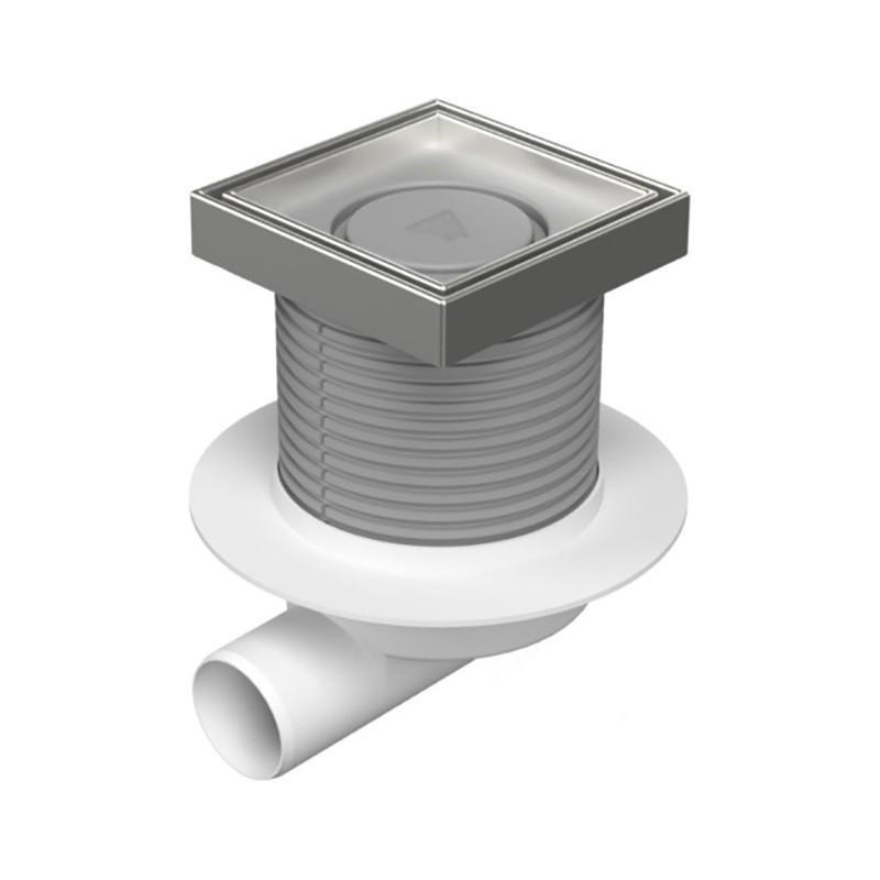 Трап низкий, h74-158мм, выход гориз.50мм, 0,61-1,12л/с, декор.решетка из нерж.стали 100х100мм, в комп,(без стакана с мембраной арт.3695002), Tece