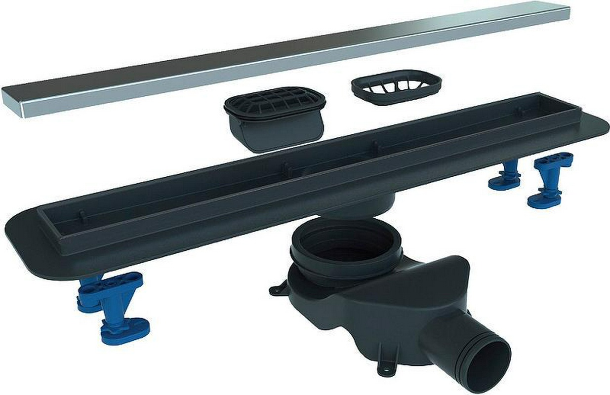 Дренажный канал 700мм, готовый комплект: сифон выход вбок, сухой/гидро затвор, ножки, вставка нерж.сталь, в компл., (цв.хром матовый), Luce ZZ