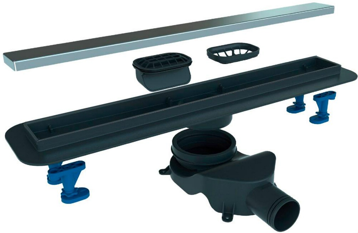 Дренажный канал 900мм, готовый комплект: сифон выход вбок, сухой/гидро затвор, ножки, вставка нерж.сталь, в компл., (цв.хром матовый), Luce ZZ