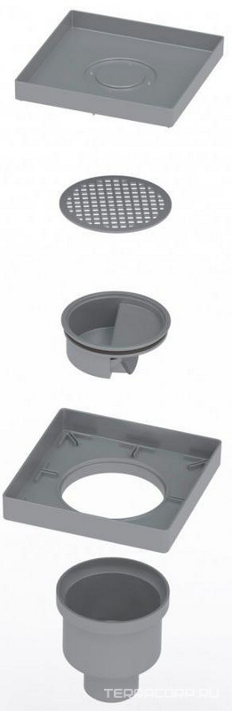 Душевой трап 15х15 см, под плитку, пластик, выпуск в пол ZZ