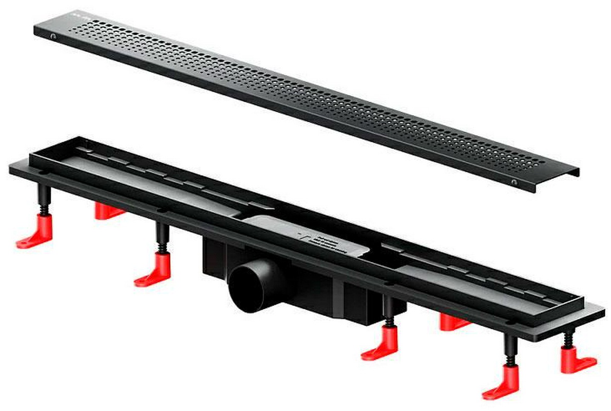 Душевой желоб 70 см, комбинированный затвор, черная матовая перфорированная решетка