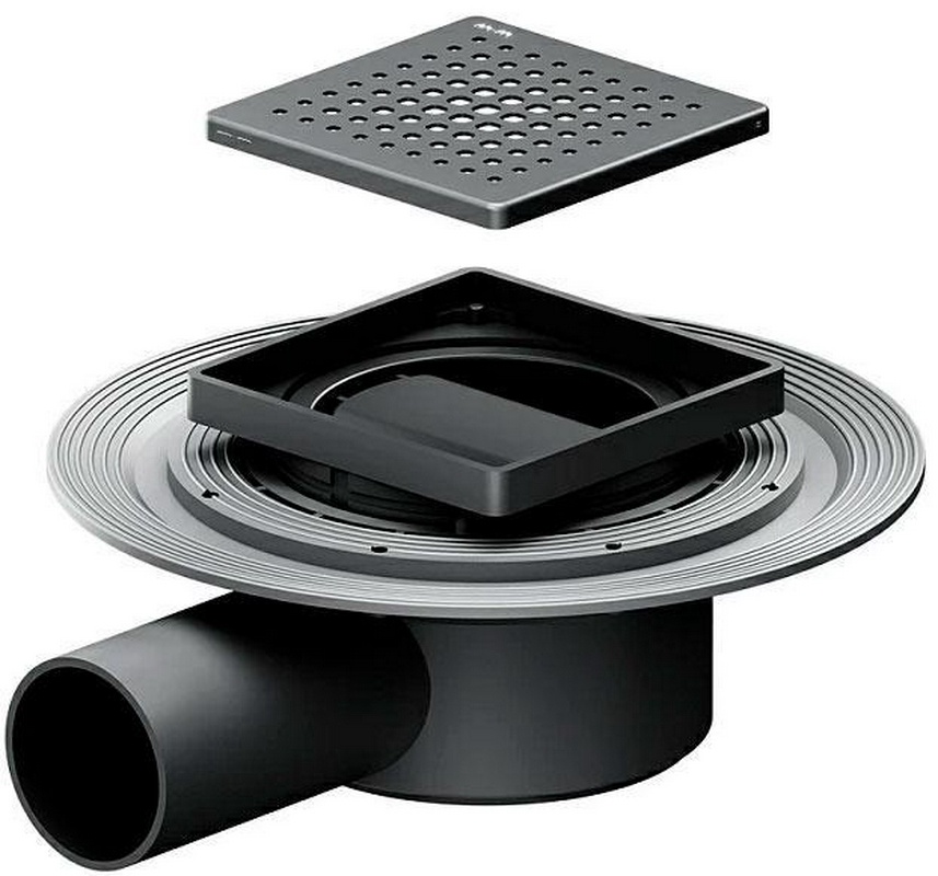 Душевой трап 10*10 см, комбинированный затвор, с черной матовой решеткой, ZZ