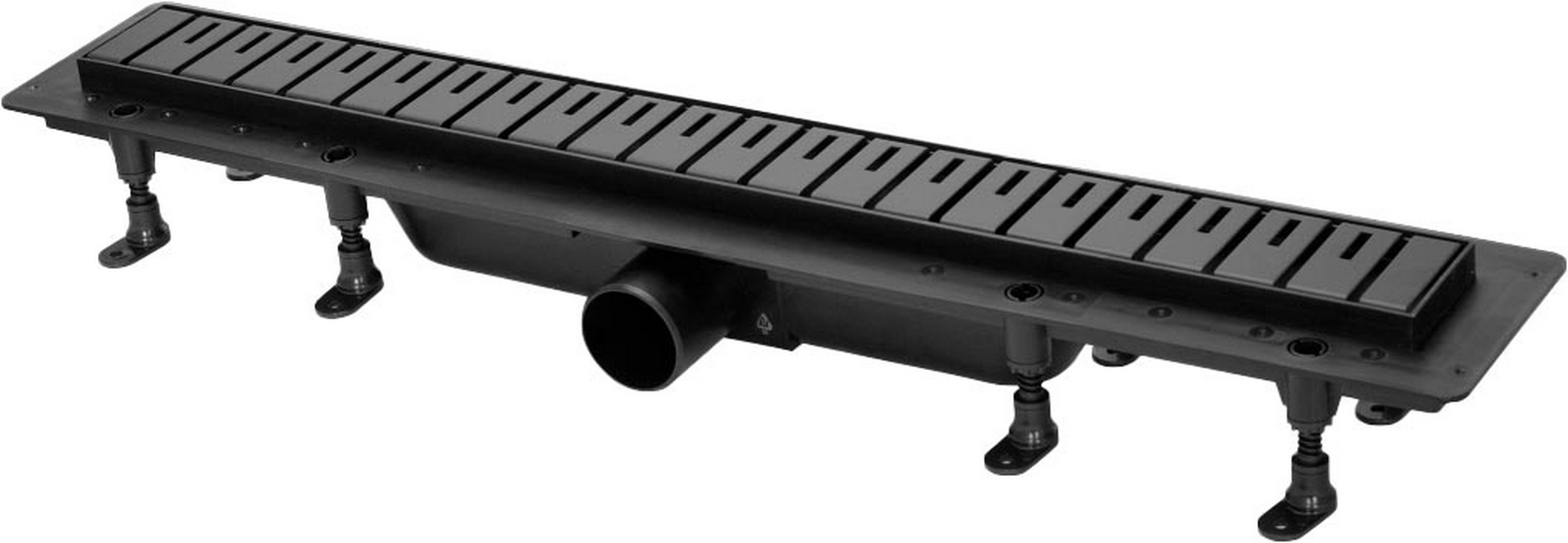 Дренажн.канал 750мм, готов.компл, сифон d50 вых.вбок,60л/мин,затвор(сухой/гидро),мин h монтаж 65мм, решетка цв.черный матовый, ZZ Plastbrno DESIGN 6 SZA6750