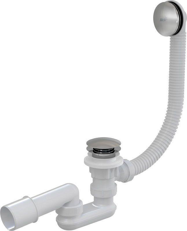 Сифон для ванны click/clack, плоский, с переливом и сеткой, гофра в компл.