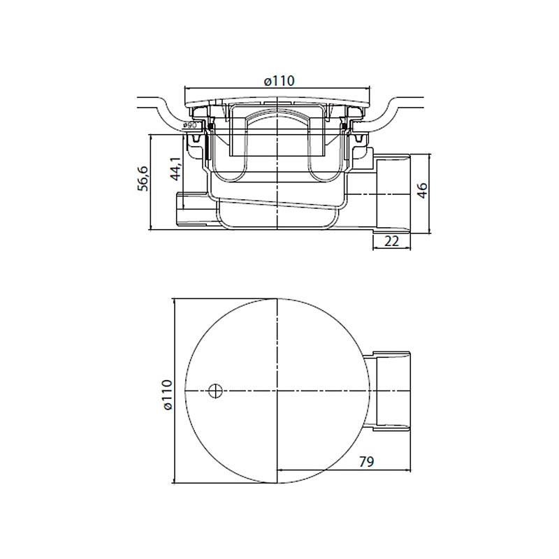 Сифон для акриловых и SMC душевых поддонов, отверст.слива d90мм, 30 л/мин., (крышка слива цв.хром), Cezares