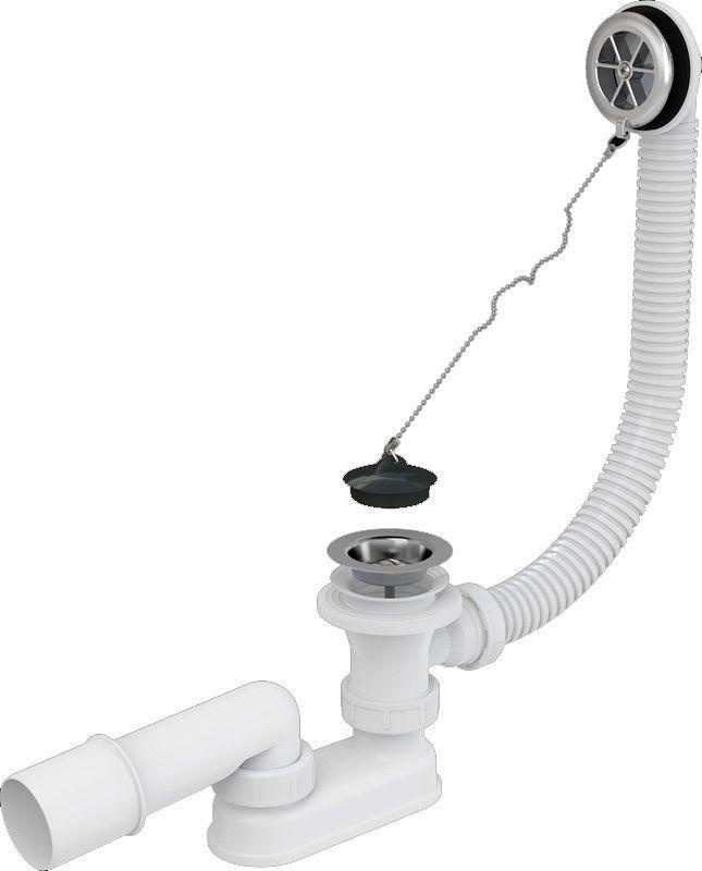 Сифон для ванны click/clack, плоский, с переливом и сеткой, гофра в компл.
