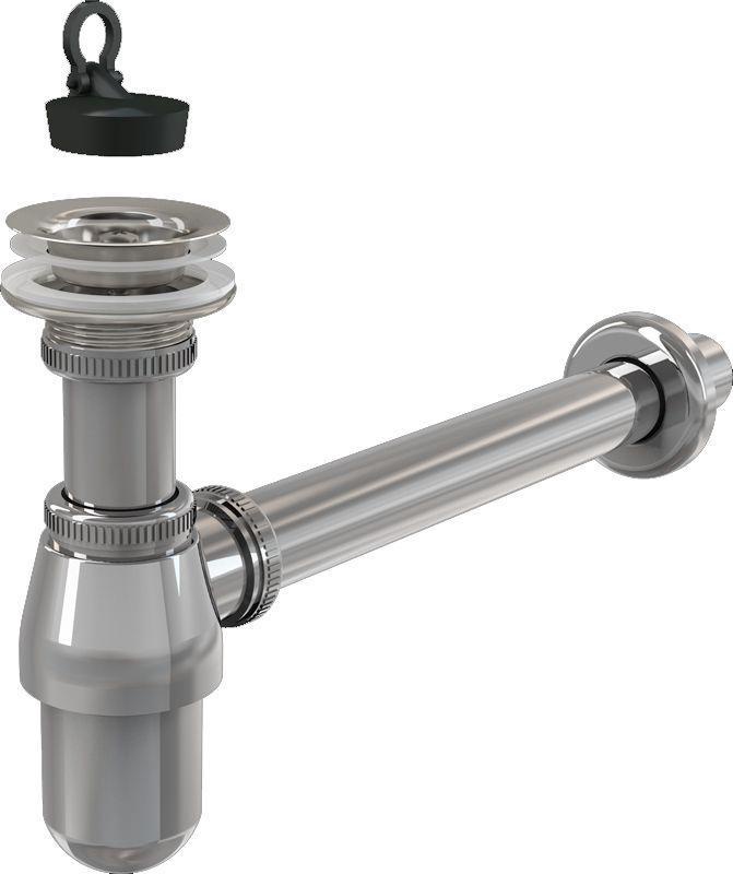 Бутылочный сифон под донный клапан Desing круглый, 32 мм с отводной трубой и отражателем, хром