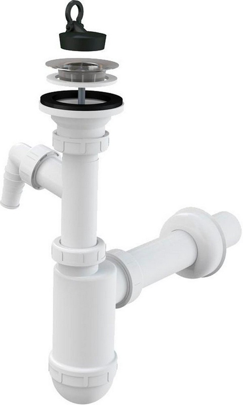 Сифон для кухонной мойки, бутылочный, с отводом (штуцером), без выпуска ZZ