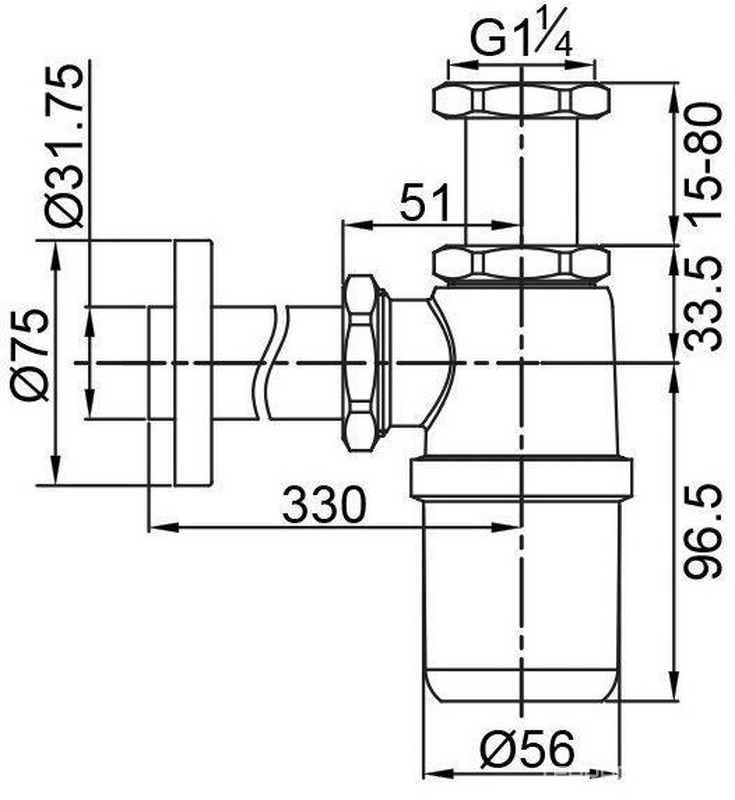 Сифон д/раковины H151-211 см. бутылочный 1"1/4, отражатель латунь, бронза ZZ
