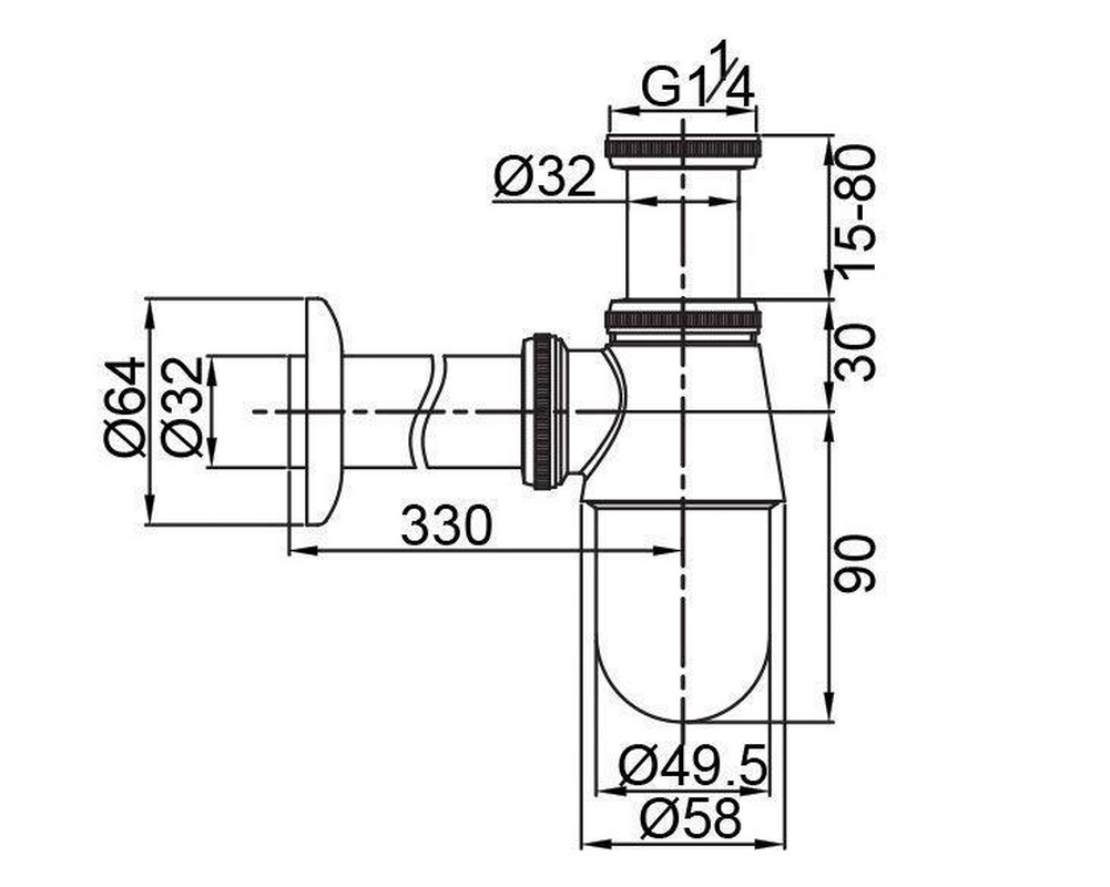 Сифон д/раковины H140-200 см. бутылочный 1"1/4, хром ZZ