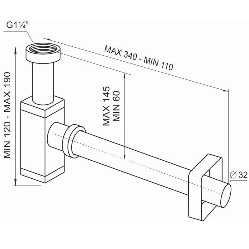 Сифон для раковины / биде, бутылочный, 1 1/4, d32мм, (латунь, цв.хром, квадратный), WINKIEL/RAWIPLAST ZZ