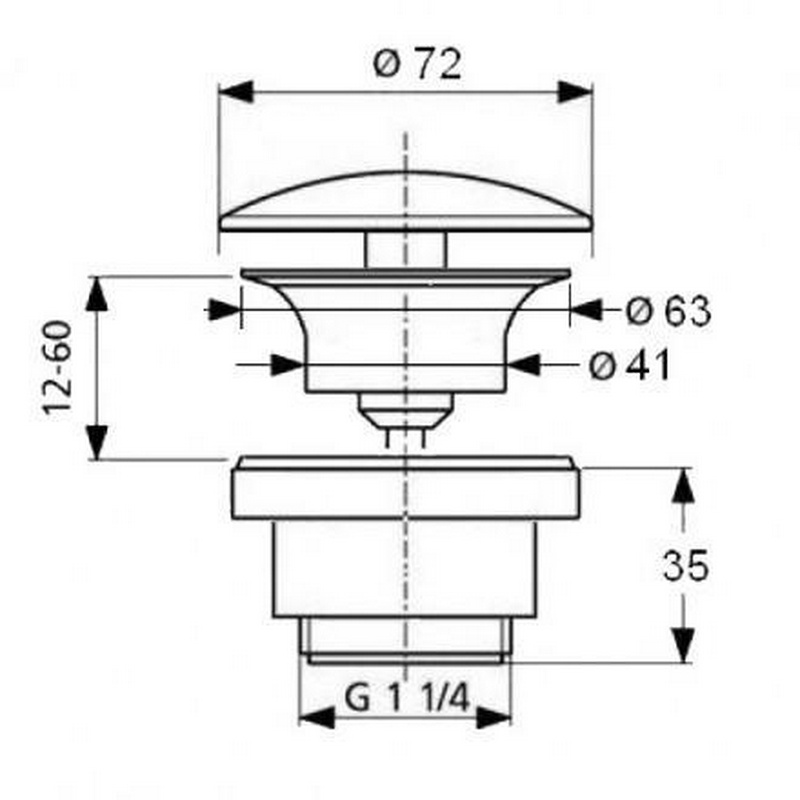 Донный клапан для сливного отверстия раковин без перелива, G 1 1/4, (крышка керамика цв.белый матовый), GSI ZZ GSI Универсал PVC09