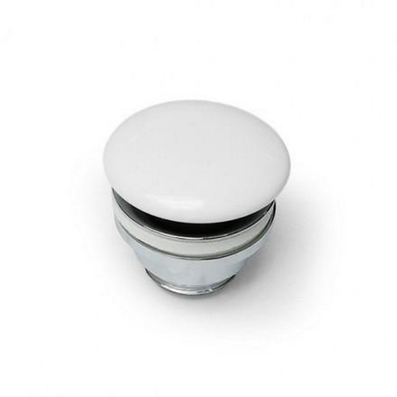 Пробка для сливного отверстия раковины, нажимная, "Click-Clack", G 1 1/4, для раковины / биде, (цв.хром / Gloss White), Ceramica Cielo ZZ