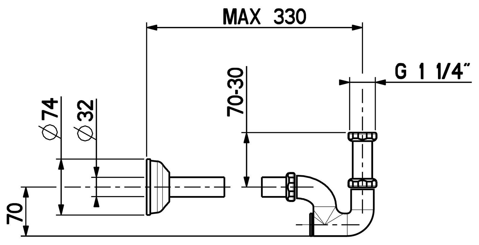 Сифон для биде, 1 1/4, горизонтальная часть 330мм, (металл цв.бронза), Gattoni ZZ