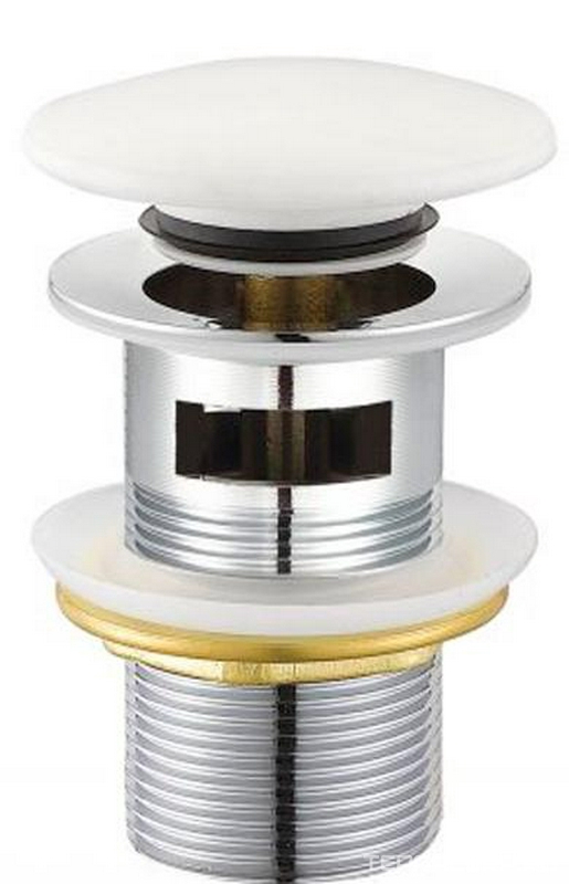 Донный клапан для сливного отверстия раковин c переливом, нажимной Clic-Clac, G 1 1/4, (металл, крышка керамика цв.белый), Cezares
