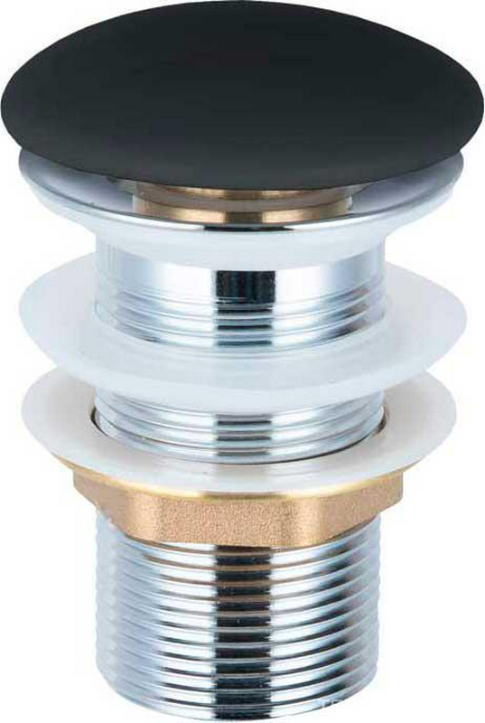 Донный клапан для сливного отверстия раковин без перелива, клик-клак, G 1 1/4, (металл, крышка керамика цв.черный матовый), Vincea ZZ