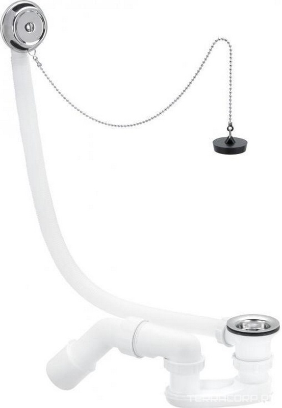 Сифон для ванны click/clack, плоский, с переливом и сеткой, гофра в компл.