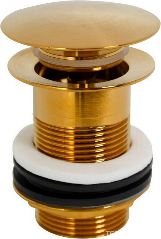 Донный клапан для сливного отверстия раковин без перелива, нажимной Clic-Clac, G 1 1/4, (металл, цв.брашированное золото), Eco ZZ