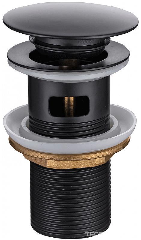 Донный клапан для сливного отверстия раковин с переливом, нажимной Clic-Clac, G 1 1/4, (металл цв. черный матовый), Priority ZZ
