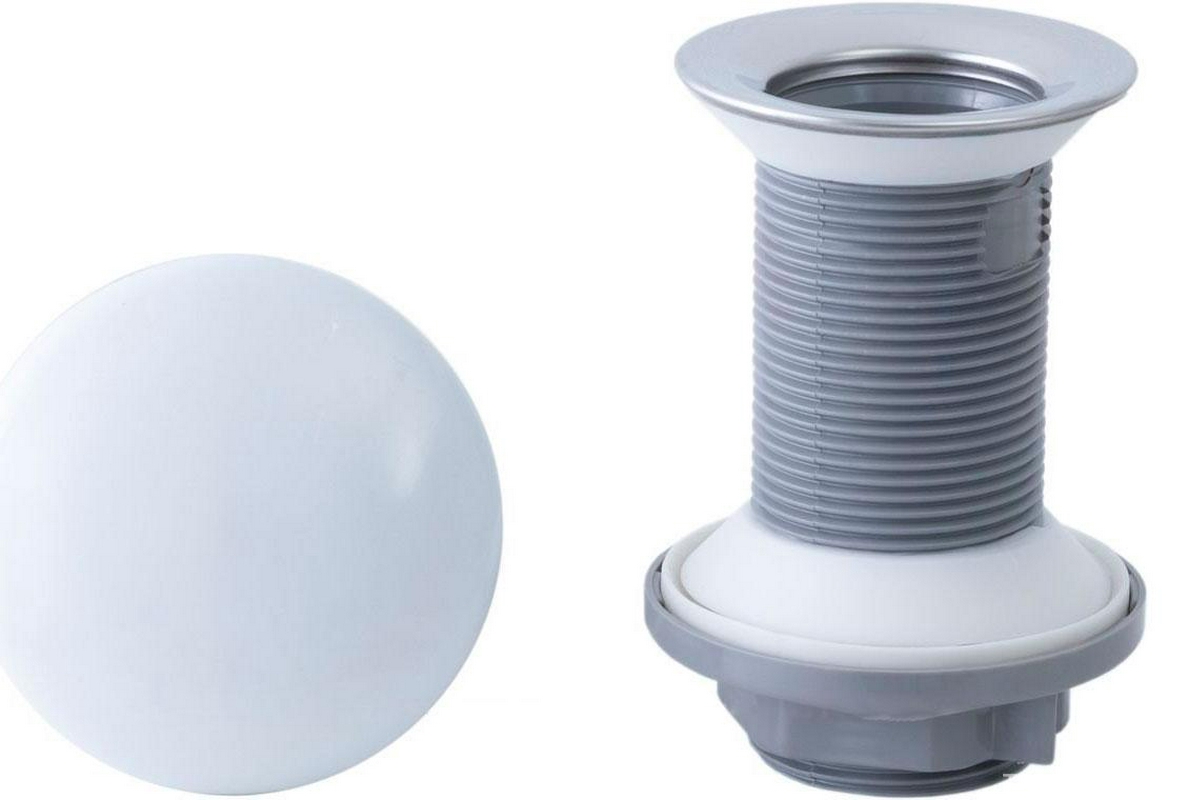 Донный клапан для сливного отверстия раковин, универсальный, незапираемый, G 1 1/4, (пластик, крышка слива керамика цв.белый глянец), Fantasy ZZ