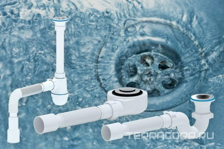 Сифон на умывальник, слив решетка, с гофрой ( выход d-50)