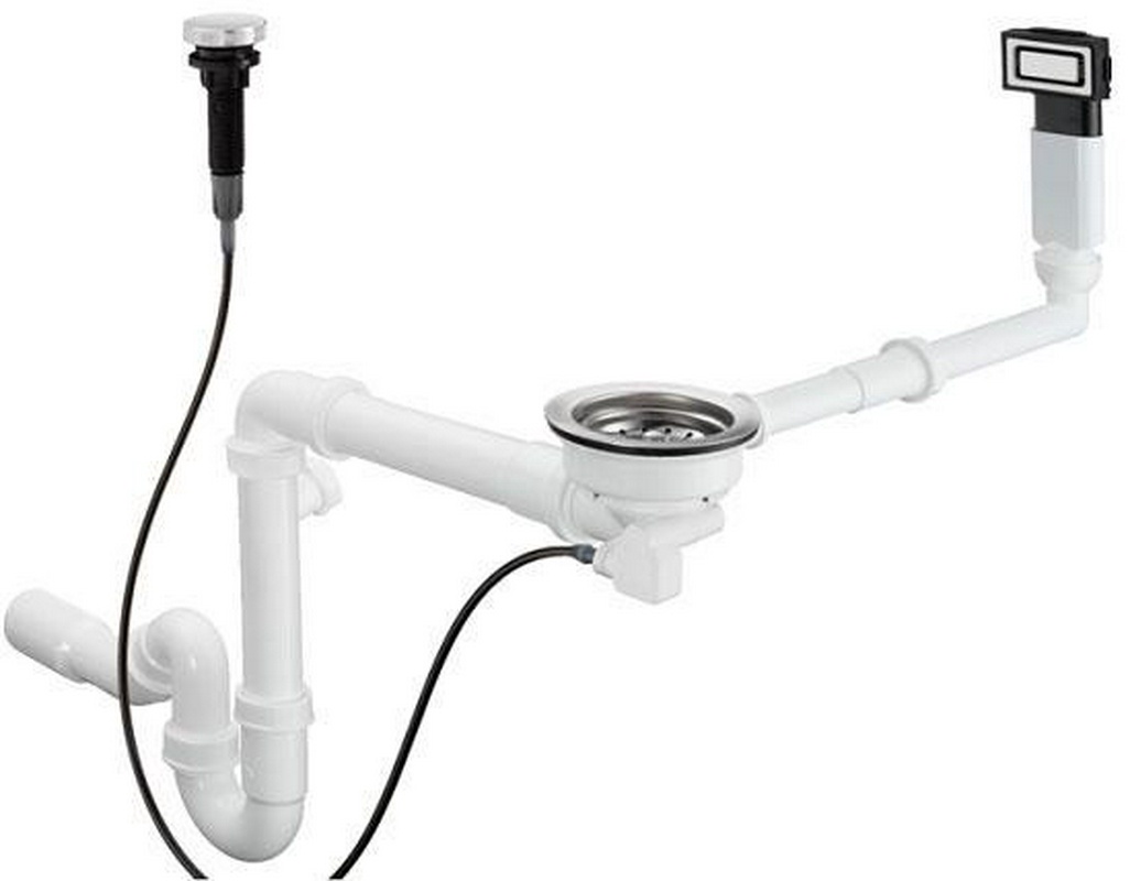 Сифон для умыв. c нерж. сеткой и пробкой, выход d-40, жесткая подводка, отвод для стир.машины