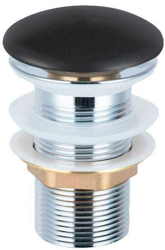 Донный клапан для сливного отверстия раковин без перелива, клик-клак, G 1 1/4, (металл, крышка керамика цв.черный матовый), Vincea ZZ