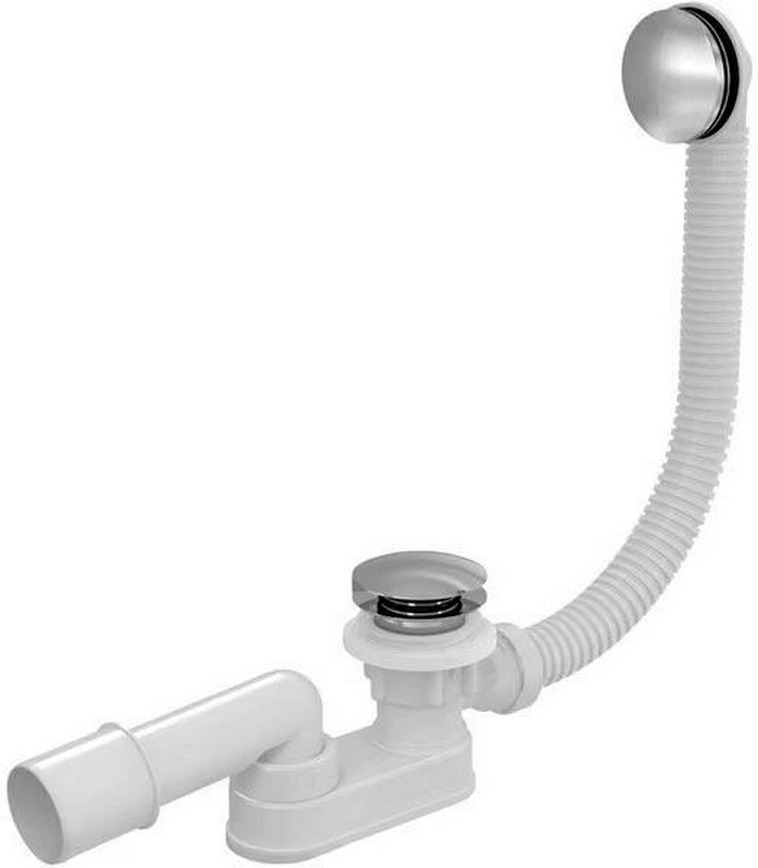 Сифон для ванны click/clack, плоский, с переливом и сеткой, гофра в компл.