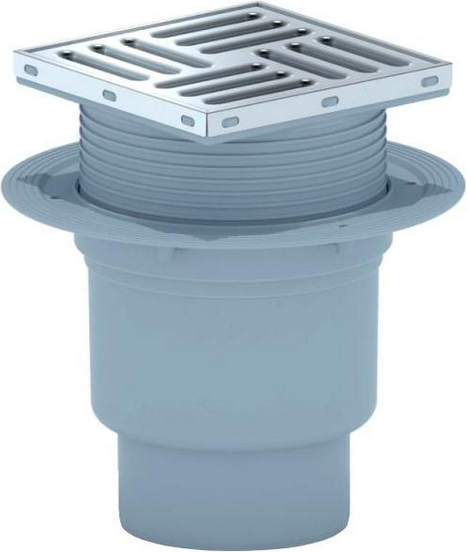 Трап для душа вертикальный, регулируемый, с сухим затвором, с решёткой из нержавеющей стали 150*150 мм, выход d-110 мм ZZ