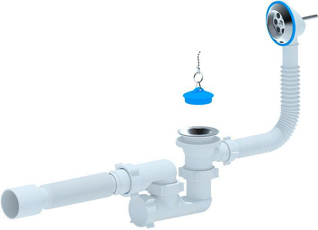 Сифон для ванны полуавтомат, плоский, с переливом, гофра в компл.